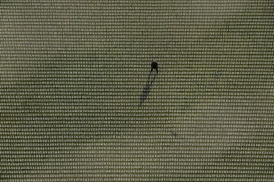 Read moreThe British artist Rob Heard stands among rows of 72,396 shrouded figures which form his piece of commemorative art "Shrouds of the Somme" to mark the upcoming centenary of the end of World War I, in Queen Elizabeth Olympic Park in London, on November 7, 2018. Each figure is a human form, individually shaped, shrouded and made to a name of the 72,396 missing British and Commonwealth servicemen who were killed fighting in the Somme area of France between July 1, 1916, and March 20, 1918, who have no known grave and whose names are engraved on the Thiepval Memorial in France. #