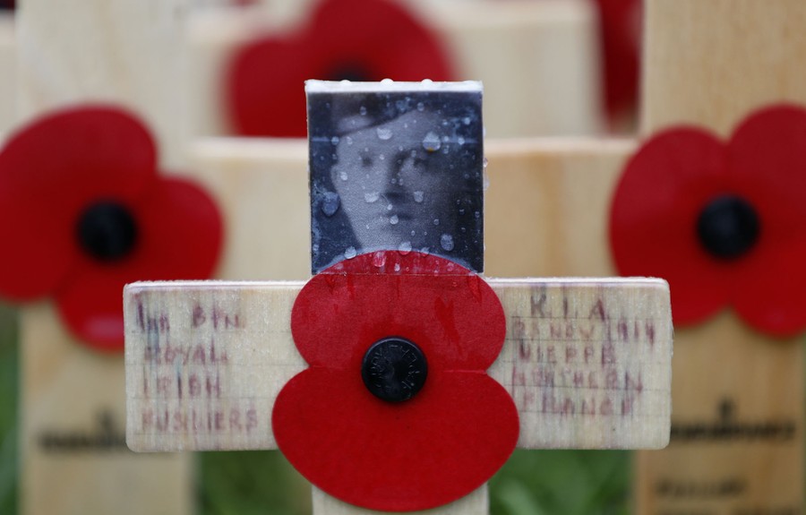 Read moreRaindrops cover a photograph of Gerald Briedell of the Royal Irish Regiment who was killed in action on November 23, 1914, atop a cross placed in the Field of Remembrance at Westminster Abbey in preparation for the annual Armistice Day commemoration for the dead and injured military and civilians in conflicts around the world, on November 11, photographed on November 7, 2018. #