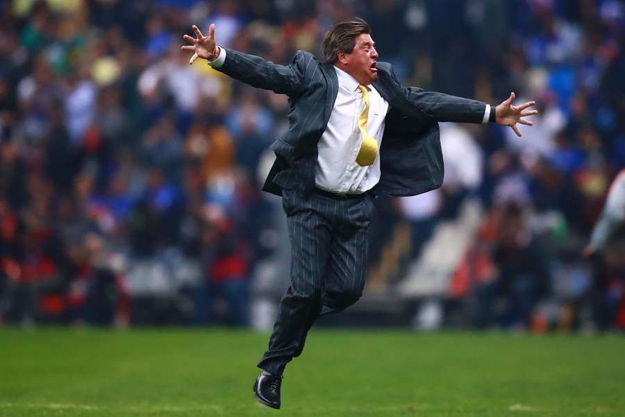 Read moreMiguel Herrera, América's coach, celebrates during the final second-leg match between Cruz Azul and América as part of the Torneo Apertura 2018 Liga MX at Azteca Stadium in Mexico City, Mexico, on December 16, 2018. #