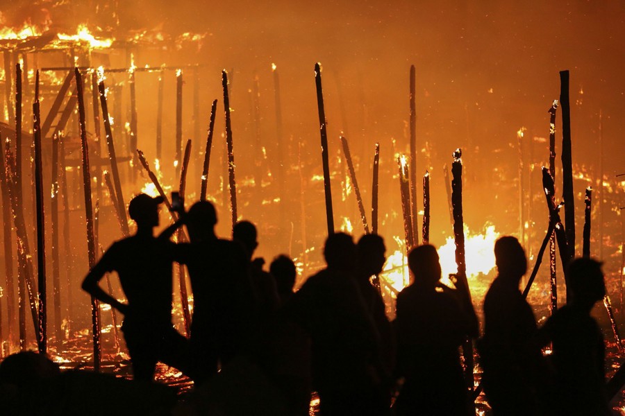 Read moreResidents of the Educandos neighborhood stand near their burning houses as firefighters try to control a massive fire in Manaus, Amazonas state, Brazil, late on December 17, 2018. According to the Manaus Civil Defense Department, the fire destroyed at least 600 homes and its origin is still unknown. #