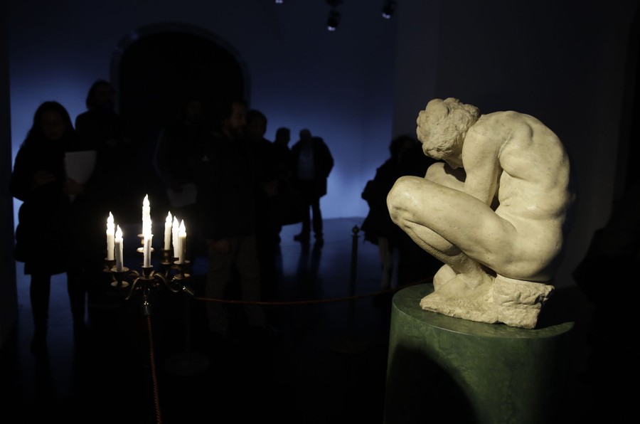 Read moreCrouching Boy, a sculpture by Michelangelo, is shown during a press preview at Fondazione Alda Fendi in Rome on December 14, 2018. The sculpture was borrowed from the Hermitage Museum of St. Petersburg, Russia, and will be in Rome until March 10, 2019. #
