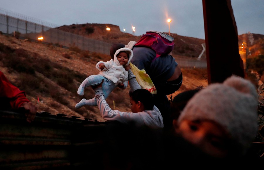 Read moreHonduran immigrants, part of a caravan from Central America traveling with the intention of reaching the United States, jump over a border fence into the U.S. from Tijuana, Mexico, on December 14, 2018. #