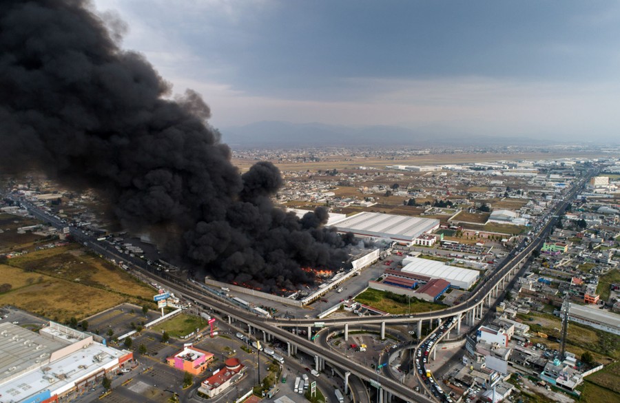Read moreAn aerial image of an industrial warehouse consumed by fire in the northern part of Toluca, Mexico, on December 17, 2018. According to information provided by the municipal civil-protection service, the accident was caused by a short circuit in the electrical installations. Three hundred and fifty employees were evacuated, and medical attention was given to two people for anxiety and smoke inhalation. #