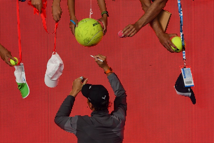 Read moreSpain's Rafael Nadal signs autographs after his victory against Australia's Matthew Ebden during their men's singles match on day three of the Australian Open tennis tournament in Melbourne on January 16, 2019. #