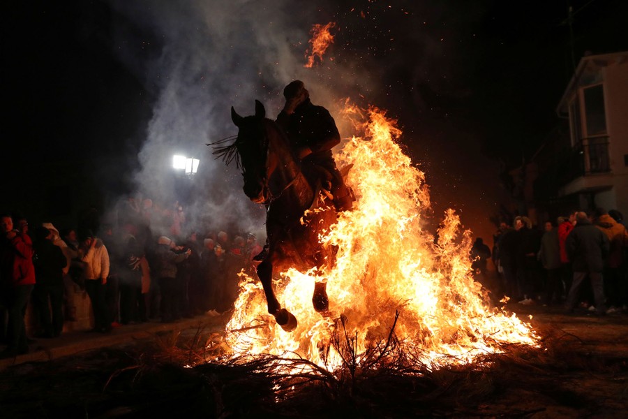Read moreA rider goes through flames during the annual Luminarias celebration on the eve of Saint Anthony's Day, commemorating Spain's patron saint of animals, in the village of San Bartolomé de Pinares, northwest of Madrid, Spain, on January 16, 2019. #