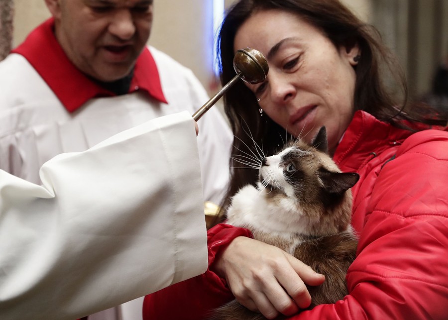 Photos of the Week: Ice Disk, Pet Blessings, Presidential Burgers