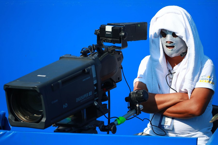 Read moreA cameraman wears a wrestling mask during the match between Sloane Stephens of the United States and Pauline Parmentier of France as part of day two of the Telcel Mexican Open 2019 at Mextenis Stadium in Acapulco, Mexico, on February 26, 2019. #