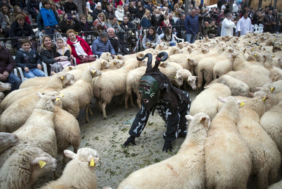 Read moreA man disguised as a demon plays within a flock of sheep before receiving a priest's benediction during the Beneides ("benedictions" in the Majorcan language) traditional ceremony of blessing animals that marks the day of San Anton (Saint Anthony), the animals' patron saint, in Muro, on the Spanish Balearic island of Majorca, on January 17, 2019. #