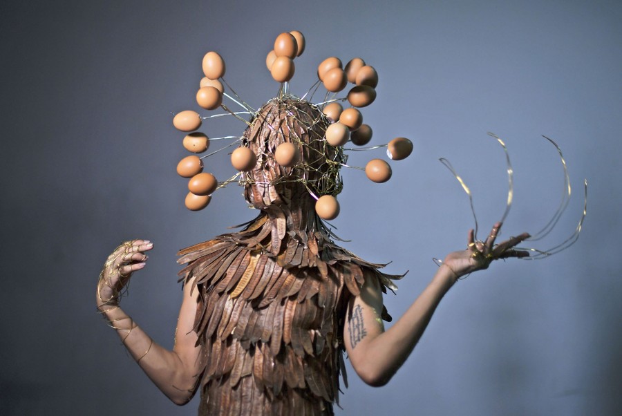 Read moreA model, wearing a mask designed by the artist Dan Schaub, presents a creation by designer Manish Arora during the Fall-Winter 2019/2020 Ready-to-Wear Collection fashion show in Paris, France, on February 28, 2019. #