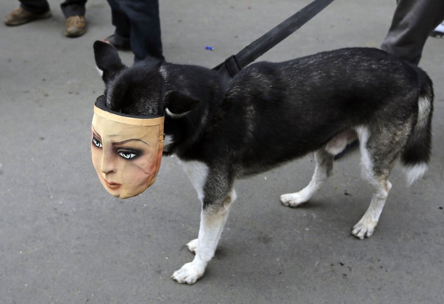 We wear masks for many reasons: for fun, for protection, or to make a statement. In turbulent public settings, obscuring one’s face can protect an individual from retaliation while evoking fear and uncertainty in others. Donning the masks of cultural, political, or religious figures can ridicule them, or lend them power and further their legacy. Those who wear masks to protect their face from environmental hazards might also end up sending a message of caution to observers. In many cases, though, masks play a more lighthearted role, allowing the wearer to take part in a festival and become someone (or something) else for a time. Once again, I’ve gathered here a few recent images of people wearing masks, covering their face for a wide variety of reasons.