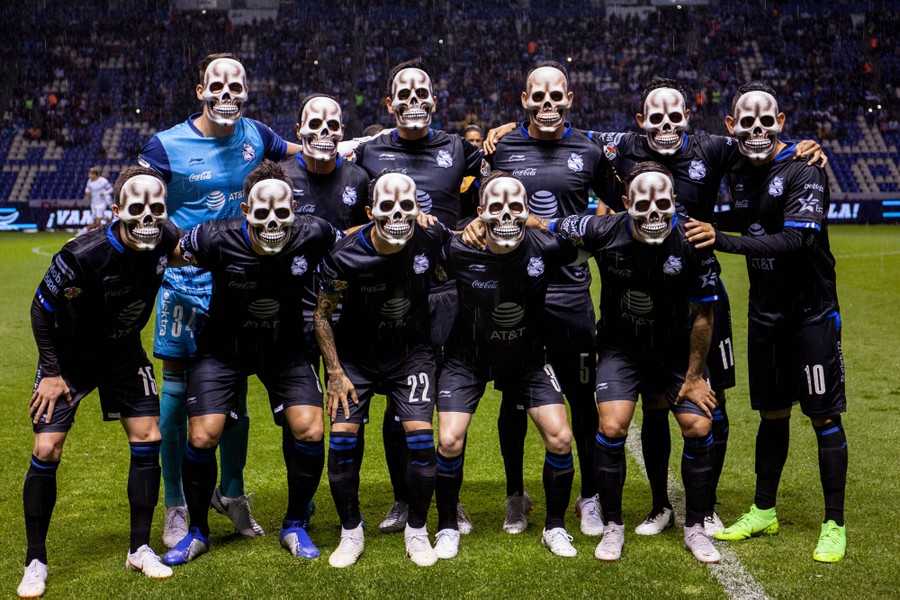 Read morePlayers of Puebla pose for the team photo wearing Day of the Dead masks prior to the 15th-round match between Puebla and Chivas as part of the Torneo Apertura 2018 Liga MX, at Cuauhtemoc Stadium in Puebla, Mexico, on November 2, 2018. #