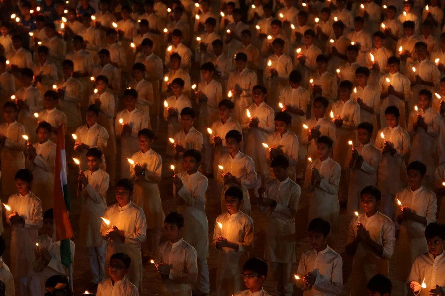 Read moreStudents hold candles during a vigil inside a temple in Ahmedabad, India, on February 15, 2019, to pay tribute to Central Reserve Police Force personnel who were killed after a suicide bomber rammed a car into a bus carrying the police in southern Kashmir on Thursday. #