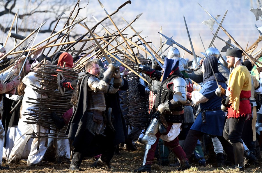 Read moreActors in period costume perform as they reenact the legendary Battle of Stubicko Polje in Donja Stubica, Croatia, on February 9, 2019. The battle, which took place on February 9, 1573, was the final battle of the famous Peasant Revolt, in which local peasants led by Matija Gubec confronted the imperial army and the local baron Ferenc Tahy. #