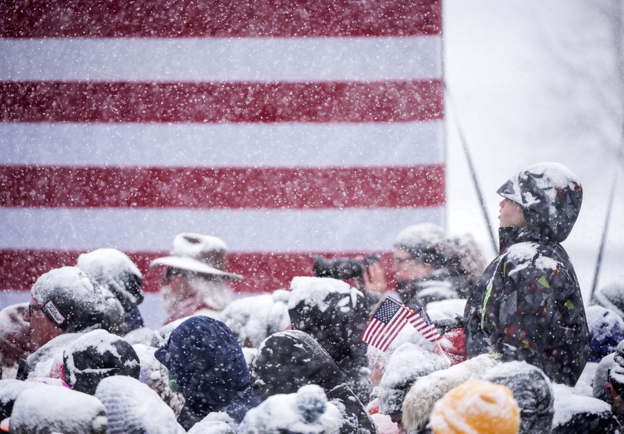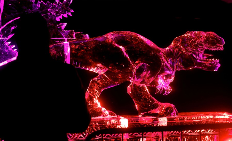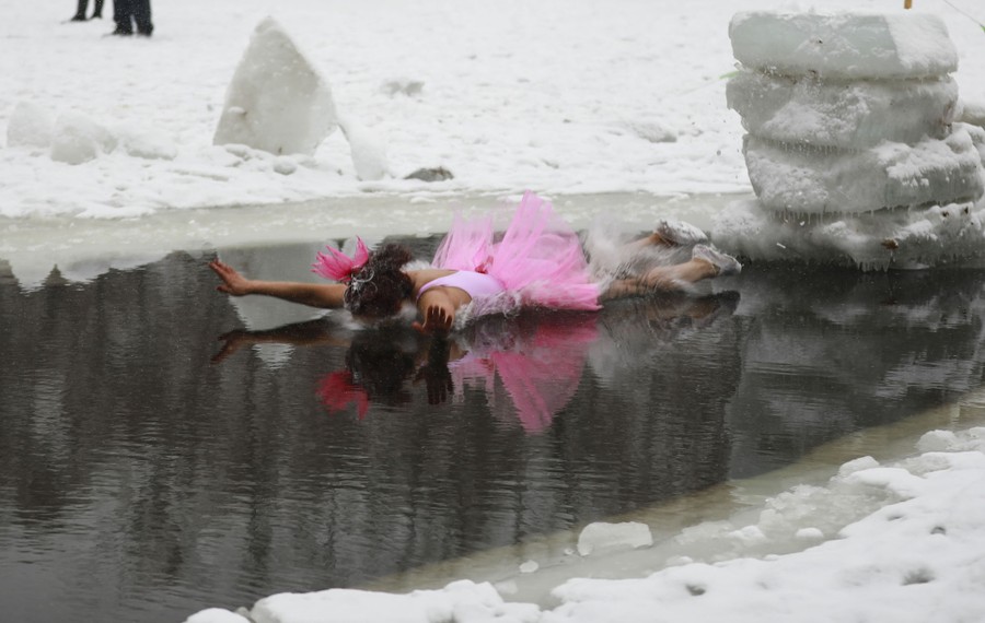 Valentine’s Day among humans and animals, fashion in New York City, dogs at play and in competition, a peasant-revolt reenactment in Croatia, family reunions at an Indian border fence, an icy dinosaur in Latvia, the Grammy Awards in Los Angeles, snow kayaking in Estonia, International Condom Day in Mexico City, and much more