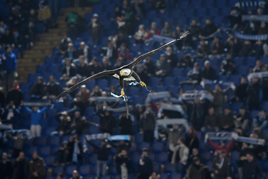 Read moreThe mascot eagle of the Lazio soccer team flies over the stadium prior to the UEFA Europa League round-of-16 first-leg soccer match on February 14, 2019, at the Olympic Stadium in Rome. #
