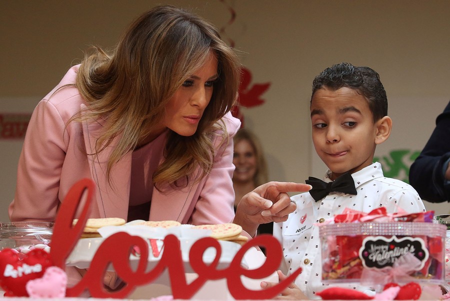 Read moreMelania Trump, the first lady, talks with the 9-year-old Josue from Puerto Rico as she meets with children during a Valentine’s Day visit to the Children's Inn at the National Institutes of Health in Bethesda, Maryland, on February 14, 2019. #