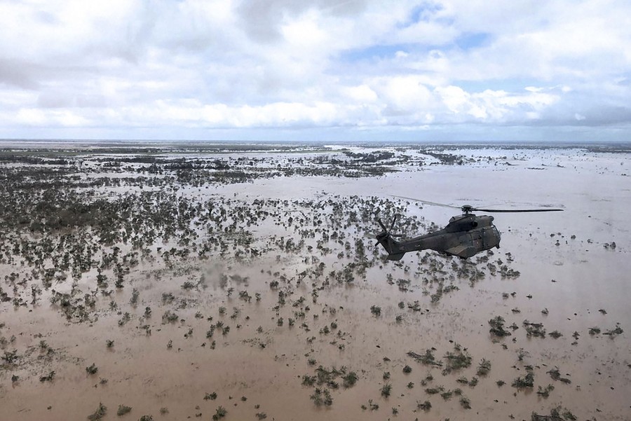 Read moreAn Oryx helicopter from the South African National Defense Forces flies during an air relief-drop mission over the flooded area around Beira, central Mozambique, on March 20, 2019. #