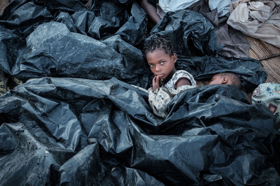 Read moreEnia Joaquin Luis, 11, wakes up beside her sister Luisa, 6, under plastic sheets protecting them from rain, as they take shelter in Buzi, Mozambique, on March 23, 2019. #