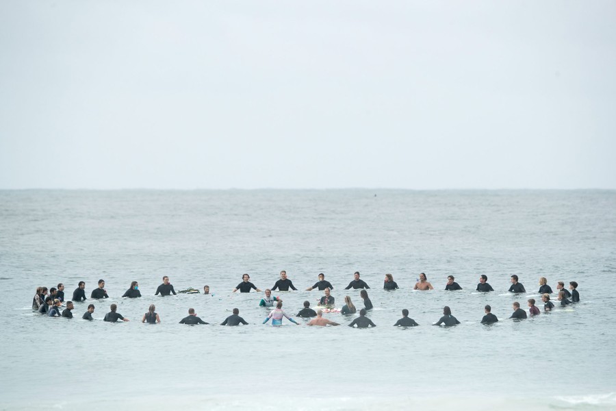 Read moreLocal surfers and competitors in the Sydney Surf Pro participate in a paddle-out wreath laying and observe a minute of silence to remember victims of the Christchurch mosque attacks at Manly Beach on March 17, 2019, in Sydney, Australia. #