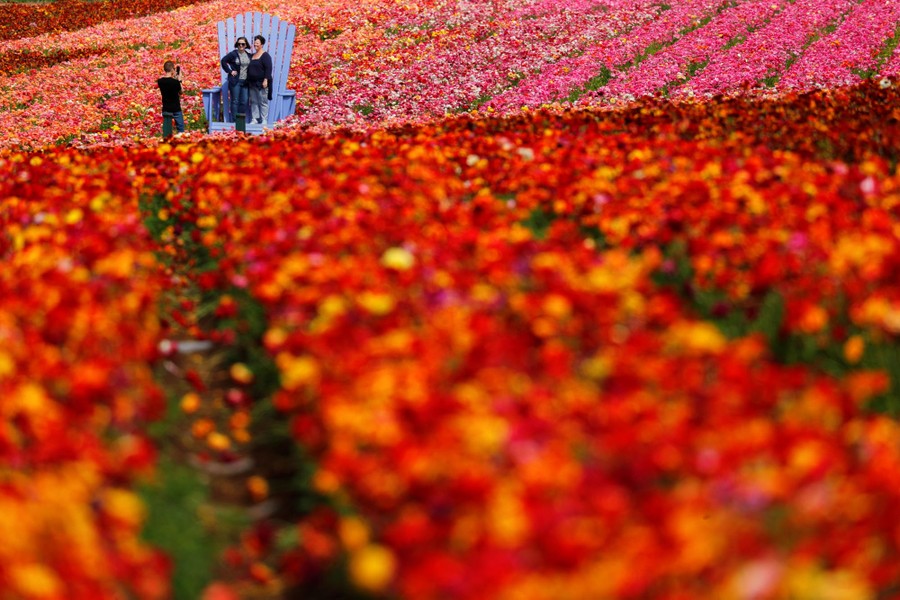 Read moreVisitors pose for a picture in a field of blooming giant Tecolote ranunculus flowers at the Flower Fields at Carlsbad Ranch in Carlsbad, California, on March 21, 2019. #