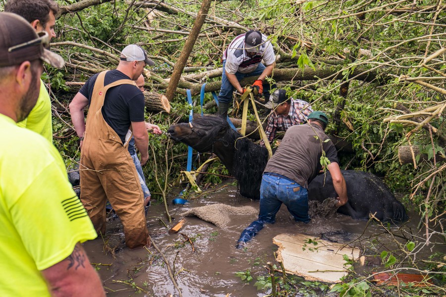 Read moreFamily and neighbors work together, with support from first responders, to free a horse from a pool of water and mud in dense trees in Linwood, Kansas, on May 29, 2019. The owner, Javier Campos, suspects that the tornado picked the horse up and carried it nearly three football fields away from his destroyed horse barn. The Midwest has seen extensive severe weather this spring, with widespread flooding and multiple tornadoes. #