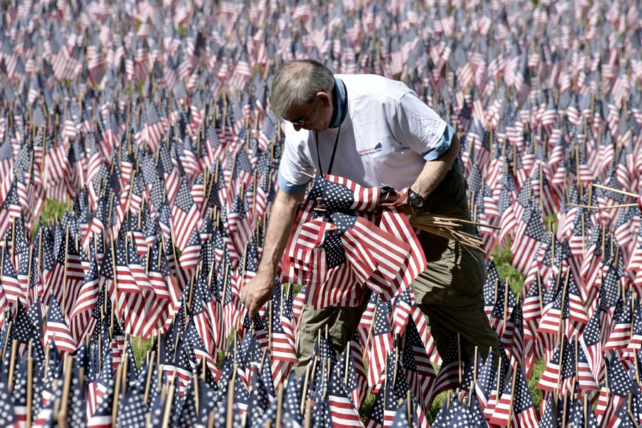 Read moreThe volunteer John Barbutto replaces broken flags at the Garden of Flags at the Soldiers and Sailors Monument on Boston Common in Boston, Massachusetts, on May 26, 2019. For the tenth year and organized by the Massachusetts Military Heroes Fund, more than 700 volunteers planted 37,297 flags, each representing a service member from Massachusetts who has died in the line of duty since the Revolutionary War. #