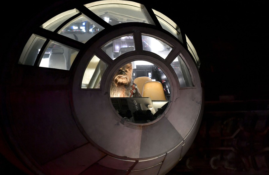 Read moreChewbacca is seen in the cockpit of the Millennium Falcon during the Star Wars: Galaxy's Edge media preview at Disneyland in Anaheim, California, on May 29, 2019. #