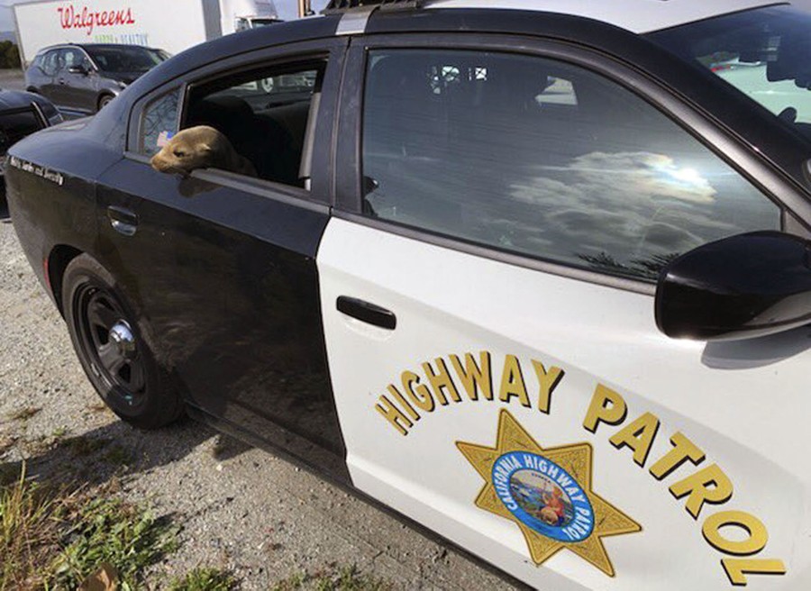 Read moreA baby sea lion sits in the back of a patrol car after being rescued along Highway 101 in South San Francisco, California, on April 30, 2019. The pup wandered onto a busy highway in South San Francisco Tuesday, stopping vehicles and alarming motorists before California Highway Patrol officials whisked it away. #
