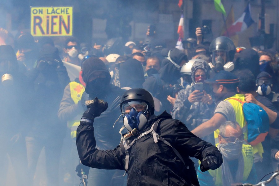 Read moreIn San Juan, Puerto Rico, demonstrators holding wooden shields are confronted by police during a protest against the Federal Fiscal Control Board, as part of May Day observations, on May 1, 2019. The U.S. Congress established the appointed Fiscal Control Board to oversee the debt restructuring in order to combat the Puerto Rican government-debt crisis. #