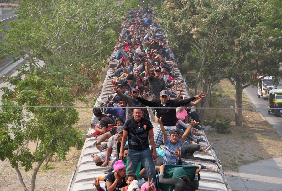 Read moreCentral American immigrants, part of a caravan traveling through Juchitan, Mexico, are pictured atop a train known as The Beast while continuing their journey toward the United States on April 26, 2019. #