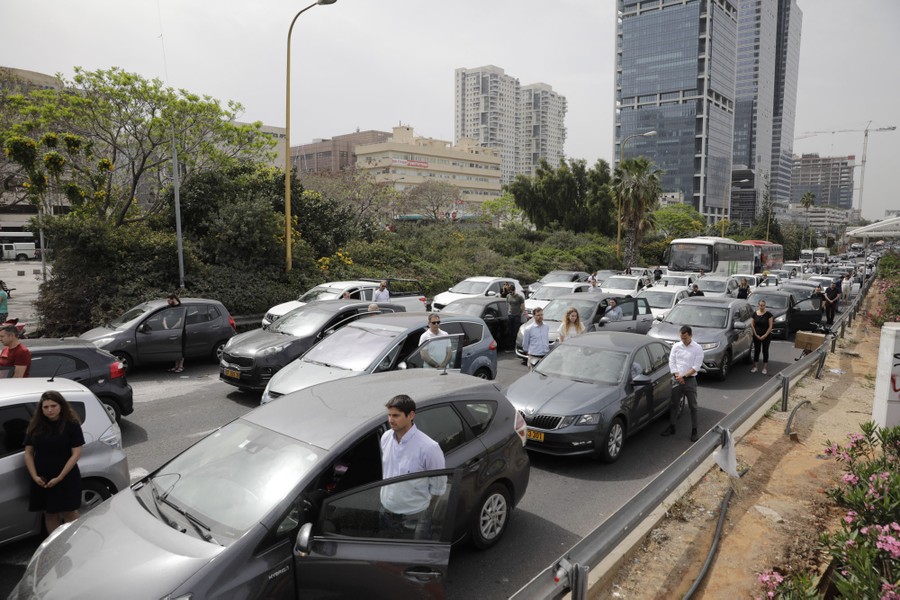 Read moreIsraelis stand next to their cars as sirens mark a nationwide moment of silence in remembrance of the 6 million Jewish victims of the Holocaust, in Tel Aviv, on May 2, 2019. #