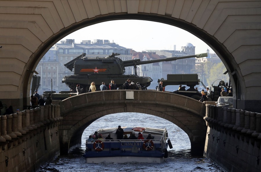 Read moreSelf-propelled Msta-S artillery vehicles are transported by trucks after a rehearsal for the Victory Day military parade, which will take place at Dvortsovaya ("palace") Square on May 9 to celebrate 74 years since the victory in World War II, in St. Petersburg, Russia, on April 30, 2019. #