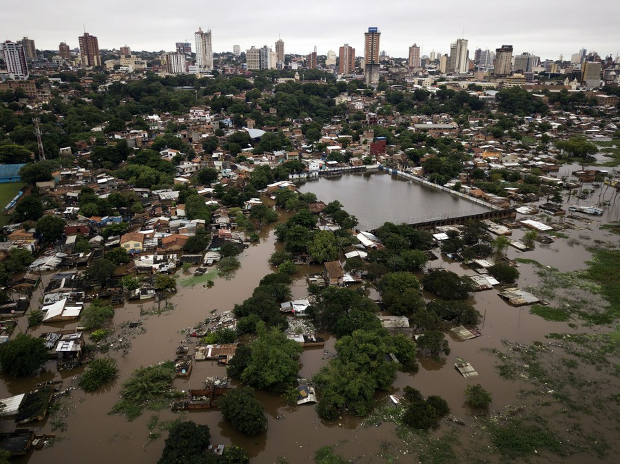 Read moreThis aerial photo shows the flooded Chacarita neighborhood of Asuncion, Paraguay, on May 11, 2019. The Paraguay River's normal stage is four meters (13 feet), but it has reached 6.75 meters (22 feet) in the capital due to unusually heavy rains since March. #
