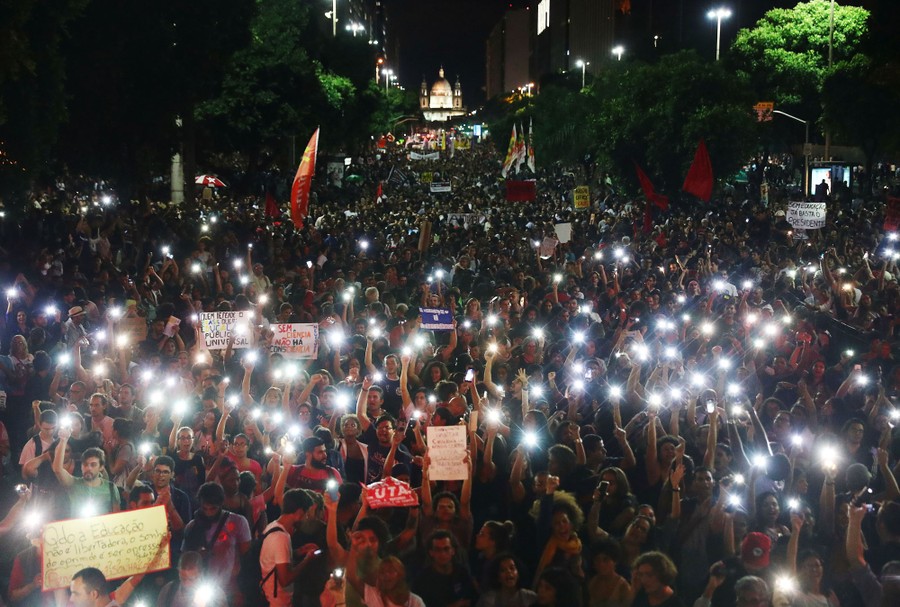 Read morePeople protest against planned cuts to federal spending on higher education by Brazilian President Jair Bolsonaro's right-wing government in Rio de Janeiro, Brazil, on May 15, 2019. #