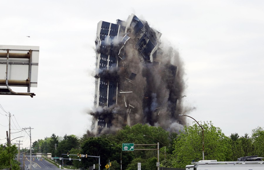 Read moreMartin Tower, the former world headquarters of Bethlehem Steel, implodes in Bethlehem, Pennsylvania, on May 19, 2019. Crowds gathered to watch the demolition of the area's tallest building, a 21-story monolith that opened at the height of Bethlehem Steel's power and profitability, but that stood vacant for a dozen years after America's second-largest steelmaker went out of business. #