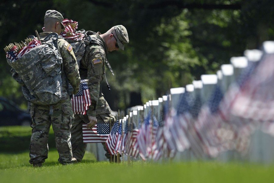 Read moreMembers of the Third U.S. Infantry Regiment, also known as the Old Guard, place flags in front of each headstone to honor the nation's fallen military heroes as part of "Flags In" at Arlington National Cemetery in Arlington, Virginia, on May 23, 2019. #
