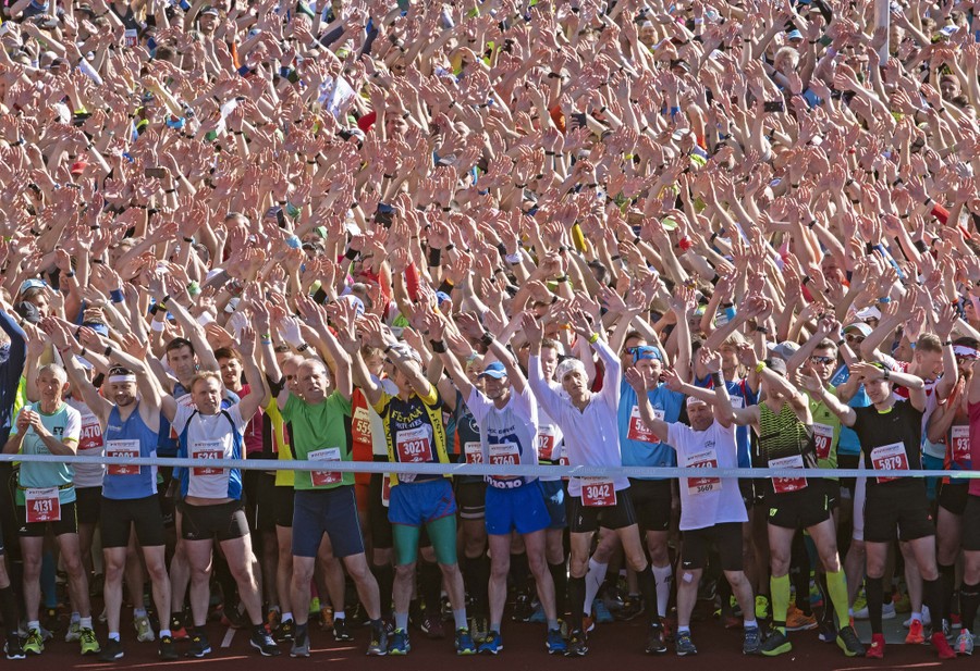 Read moreThousands of runners wave and dance before they start the GutsMuths-Rennsteiglauf cross-country run, Europe's most popular cross-country race, in Neuhaus am Rennweg, Germany, on May 18, 2019. #