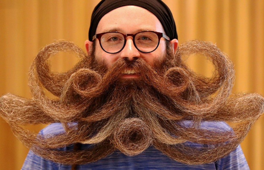 Read moreA participant in the World Beard and Mustache Championships in Antwerp, Belgium, poses before taking part in one of the 17 categories of beard and mustache styles on May 18, 2019. #