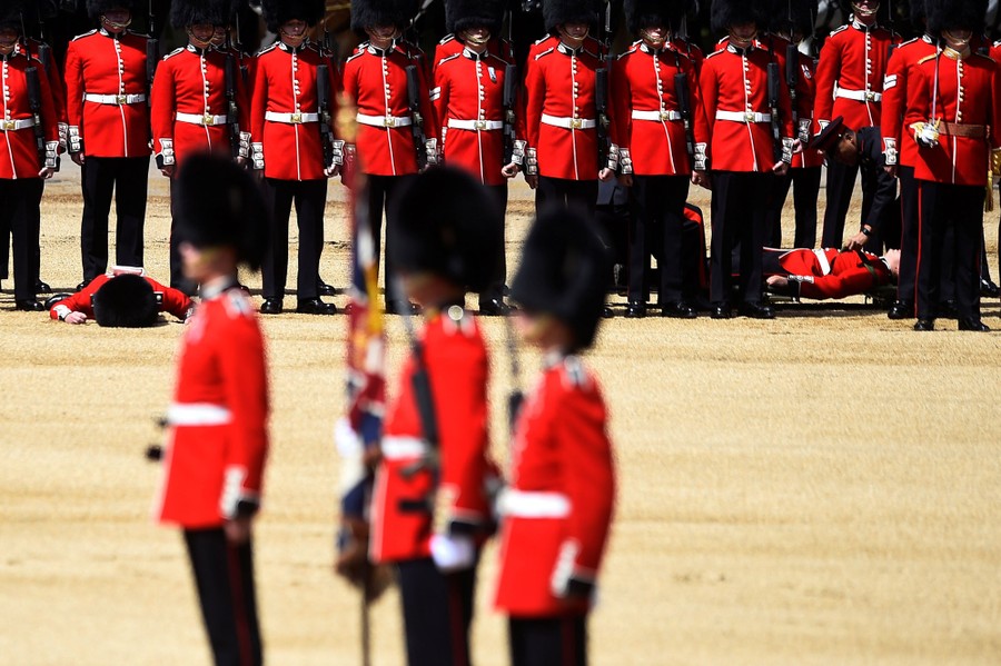 Read moreGuardsmen faint as the Household Division rehearses Trooping the Colour for the Colonel's Review ahead of the Queen's birthday parade next week, on Horseguards Parade in London, England, on June 1, 2019. #