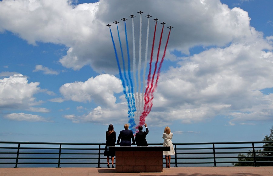 Read moreU.S. President Donald Trump; the first lady, Melania Trump; French President Emmanuel Macron; and his wife, Brigitte Macron, watch a flyover in the Normandy American Cemetery to commemorate the 75th anniversary of the D-Day landings, in Normandy, France, on June 6, 2019. #