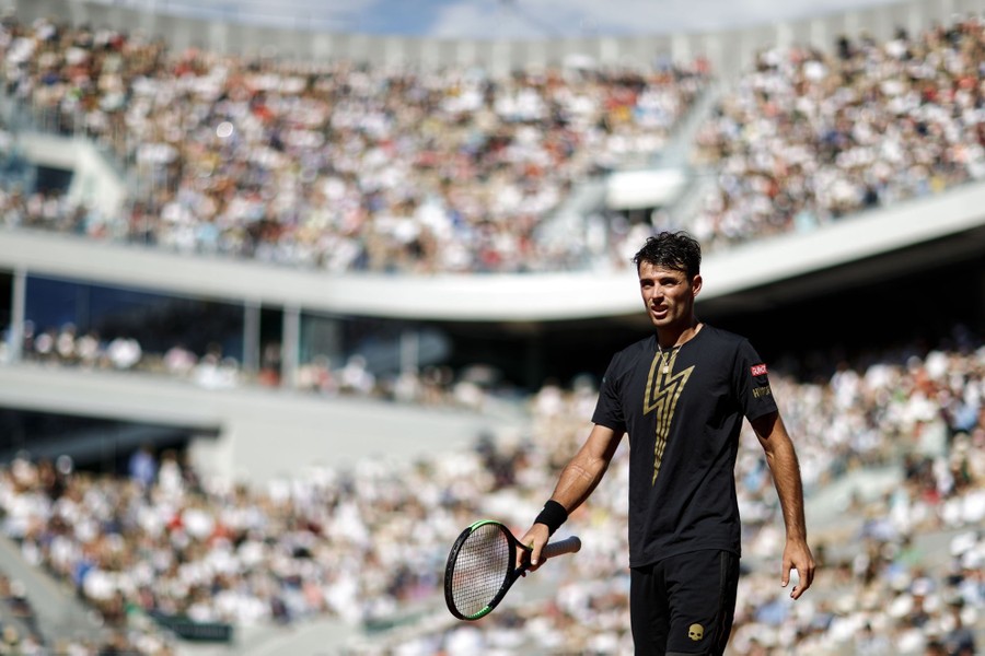 Read moreArgentina's Juan Ignacio Londero reacts as he plays against Spain's Rafael Nadal during their men's singles fourth-round match on day eight of the Roland Garros 2019 French Open tennis tournament in Paris on June 2, 2019. #
