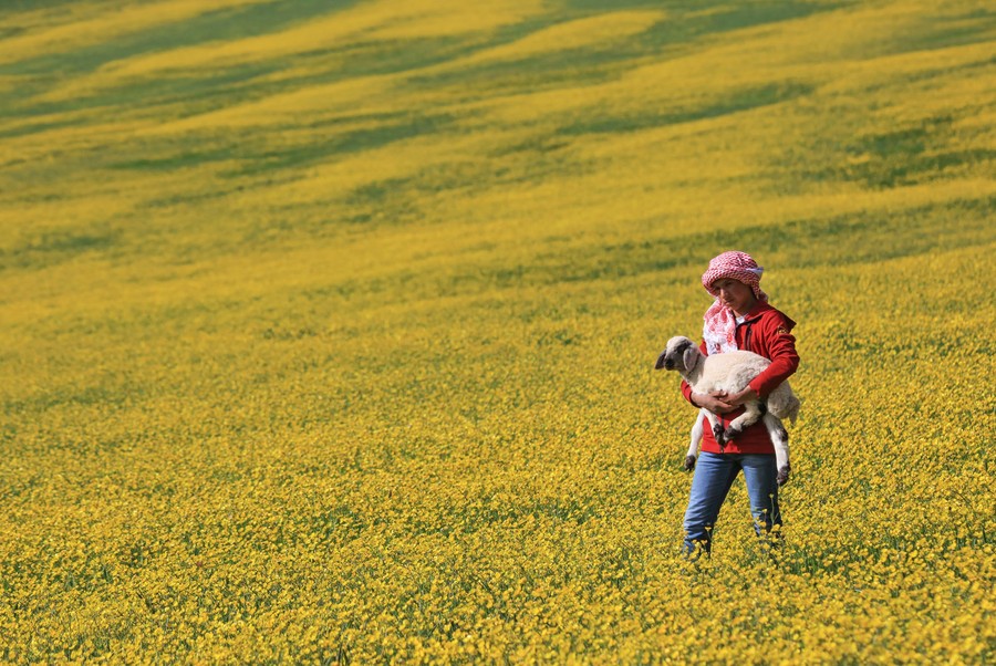Read moreA boy carries a lamb as people collect flowers to use them on herbed cheese (also known as otlu peynir) in the Catak district of Turkey's eastern Van province. #