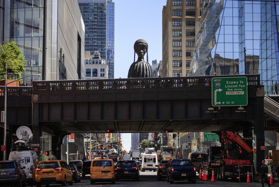 Read moreSimone Leigh's Brick House, a 16-foot-tall bronze bust of a black woman, stands atop the Spur, the last section of the High Line park to be converted into public space, in New York City on June 4, 2019. #