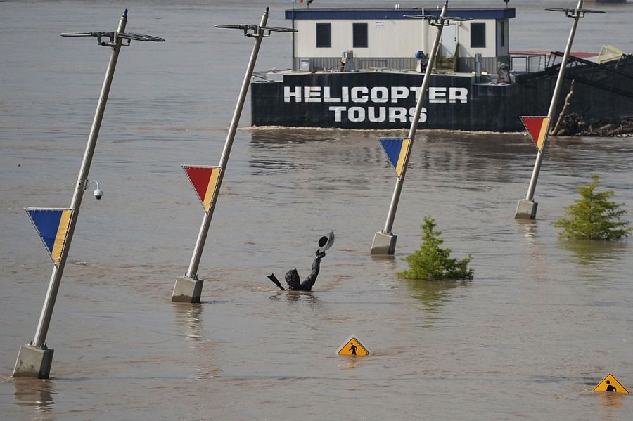 Read moreFloodwaters from a swollen Mississippi River take over the Gateway Arch grounds and nearly submerge a statue of Lewis and Clark on June 6, 2019, in St. Louis, Missouri. Residents along the Mississippi River were bracing for the expected arrival of the crest at near-record levels on Friday. #