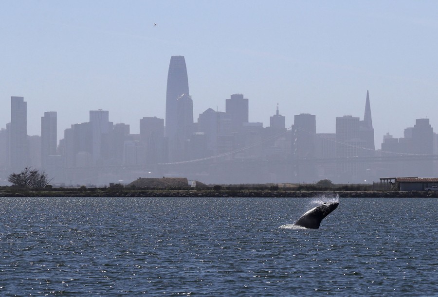 Read moreA humpback whale breaches in a lagoon in Alameda, California, on June 4, 2019. Scientists are concerned about the whale, which has been swimming in a lagoon off the San Francisco Bay for more than a week. According to the Marine Mammal Center, the whale appears to be unhealthy and is likely malnourished. #