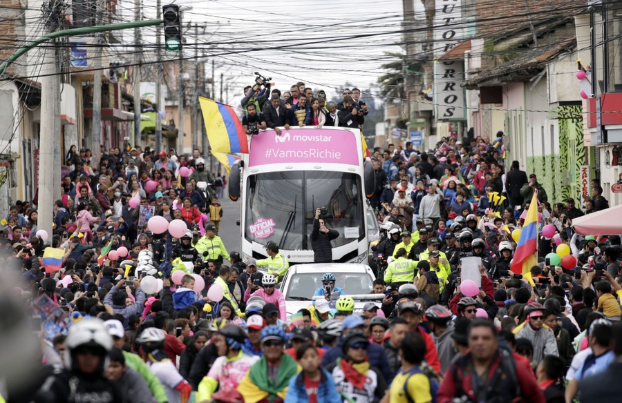 Read morePeople welcome the Ecuadorian cyclist Richard Carapaz, after his win in the Giro d'Italia, to his hometown in Tulcan, Ecuador, on June 12, 2019. It's the first time in the 102 editions of the Giro that an Ecuadorian won, and only the second time for a South American. #