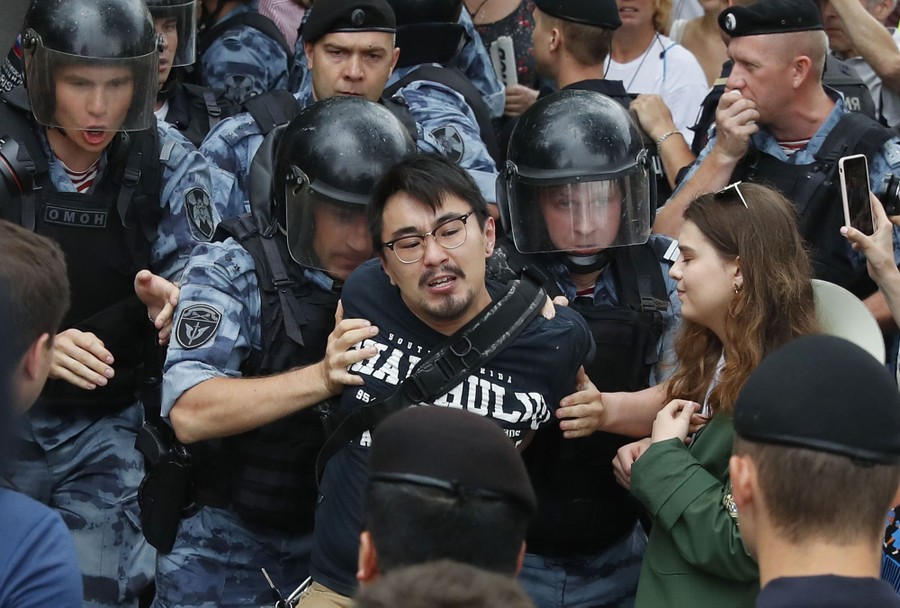 Read morePolice officers detain a protester during a march in Moscow, Russia, on June 12, 2019. Police and hundreds of demonstrators faced off in central Moscow at an unauthorized march against police abuse in the wake of the high-profile detention of a Russian journalist. #
