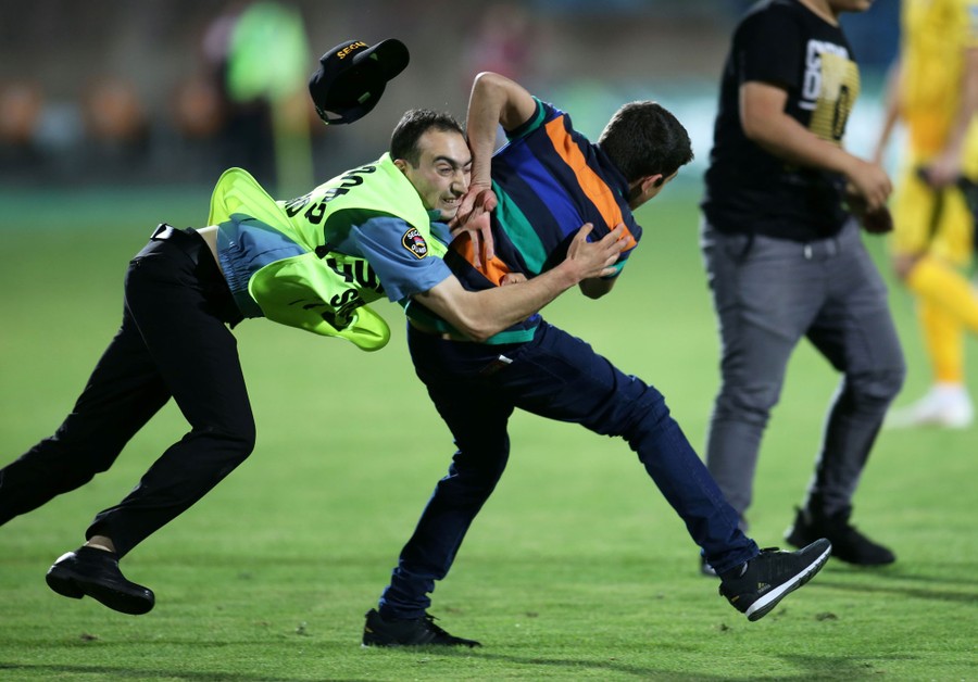 Read moreA steward tackles a pitch invader during a Euro 2020 qualifier match between Armenia and Liechtenstein at Vazgen Sargsyan Republican Stadium in Yerevan, Armenia, on June 8, 2019. #