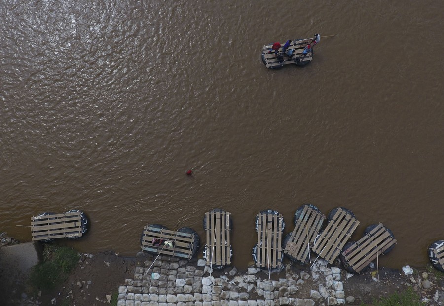 Read moreInner tube and plank rafts ferry passengers and merchandise freely across the Suchiate River between Ciudad Hidalgo, Mexico, and Guatemala on June 13, 2019. Mexican officials said earlier in the week they were beginning deployment of the country's new national guard for immigration enforcement, but on Thursday, it was still daily life as usual along the Suchiate, with people and goods moving back and forth in a relaxed flow of cross-border traffic. #