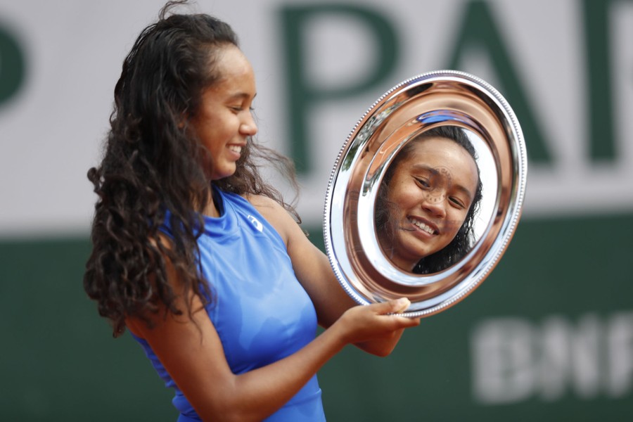 Read moreCanada's Leylah Annie Fernandez holds the trophy after winning the junior women's final match of the French Open tennis tournament against Emma Navarro of the U.S. in two sets, 6–3, 6–2, at Roland Garros Stadium in Paris, on June 8, 2019. #